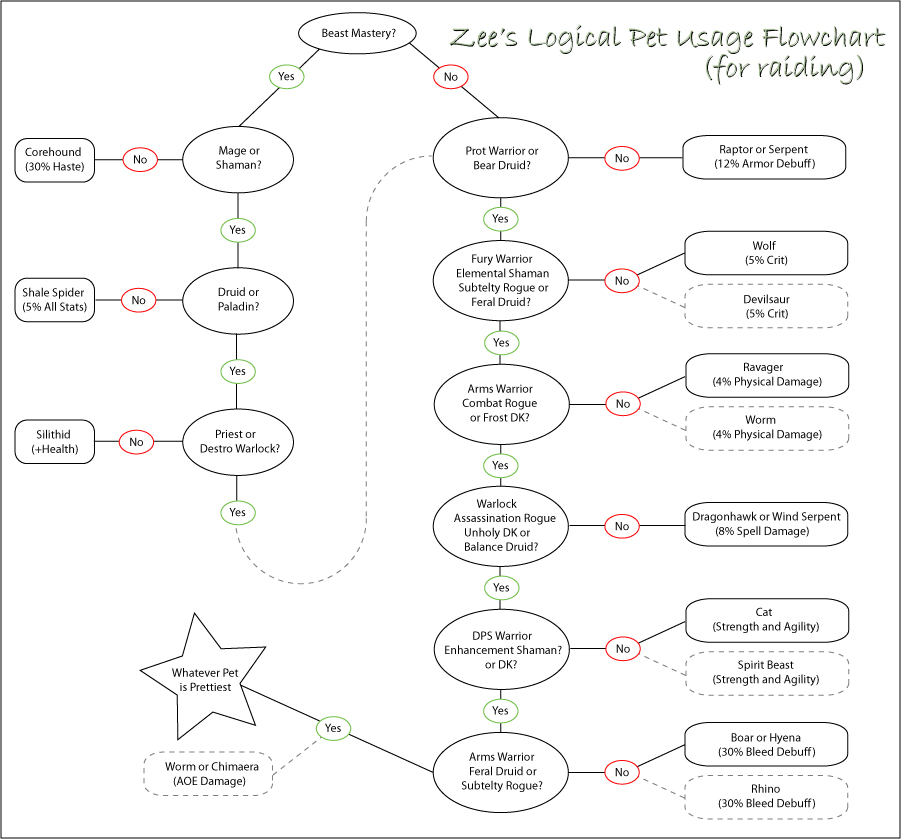 Here is a suggested list of the 12 pets that you should have in your stable to cover every raid buff type. This list assumes that you’d prefer ferocity over cunning, and cunning over tenacity — so that you always have the highest dps pet providing your buff. It also assumes that you’d prefer a non-exotic pet over an exotic pet, so you’ll have more flexibility in what spec to use.